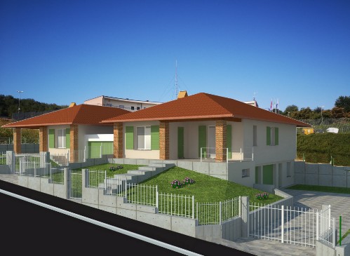 Si propongono diverse soluzioni per la realizzazione di villini binati. Nella sovrastante ipotesi si prevede la realizzazione di due villini con metrature diverse fra loro con la zona abitativa su un unico livello; la villa di destra prevede anche un ampio seminterrato a box taverna e locale tecnico, mentre al villino di sinistra è abbinata l'autorimessa e il locale tecnico. L'abitazione prevede l'ingresso in salone con cucina abitabile, tre camere letto, due bagni - porticato prospicente il giardino di pertinenza su tre lati. Nella sottostante ipotesi si prevede la realizzazione di tre villini aventi la zona abitativa su due livelli PR-1° e la zona seminterrata adibita a box. L'abitazione prevede l'ingresso in salone con cucina abitabile, tre camere letto, due bagni - porticato prospicente il giardino di pertinenza su du/tre lati. Naturalmente tutto personalizzabile a scelta.